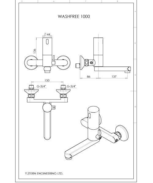 Tecnología Touch Free. Canilla electrónica para montar en pared activada por sensor infrarrojo con mezclador manual. Batería de 9v interna montada en el cuerpo del grifo.