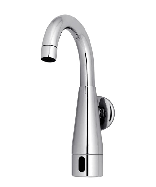 Tecnología Touch Free. Canilla electrónica para montar en pared activada por sensor infrarrojo para agua fría o premezclada. Este grifo es ideal para reemplazar picos en griferías antiguas y transformarlos en grifos automáticos Batería de 9v interna montada en el cuerpo del grifo.