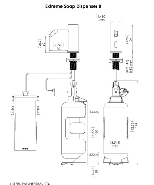 El equipo utiliza un sensor infrarojo TECNOLOGIA TOUCH FREE.Está equipado con una bomba peristáltica, este tipo de bombas pueden utilizarse con una gran variedad de jabones líquidos de diferente viscosidad.Soporta detergentes sintéticos y antibacteriales que contienen PCMX y/o TRICLOSAN.