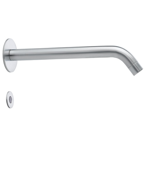 Para montaje en pared o piletón, activada por sensor infrarrojo. Caja portapilas externa IP 67con 6 pilas de 1.5 V. Filtro antiarenillas incluido. Para usar con agua fría o premezclada. Rango del sensor ajustable manualmente o por control remoto. Otras funciones ajustables por control remoto (rango de alcance del sensor, retardo para abrir, Tiempo de flujo).